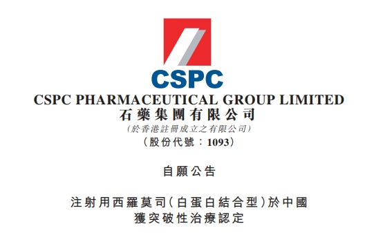 石药集团注射用西罗莫司(白蛋白结合型)于中国获突破性治疗认定