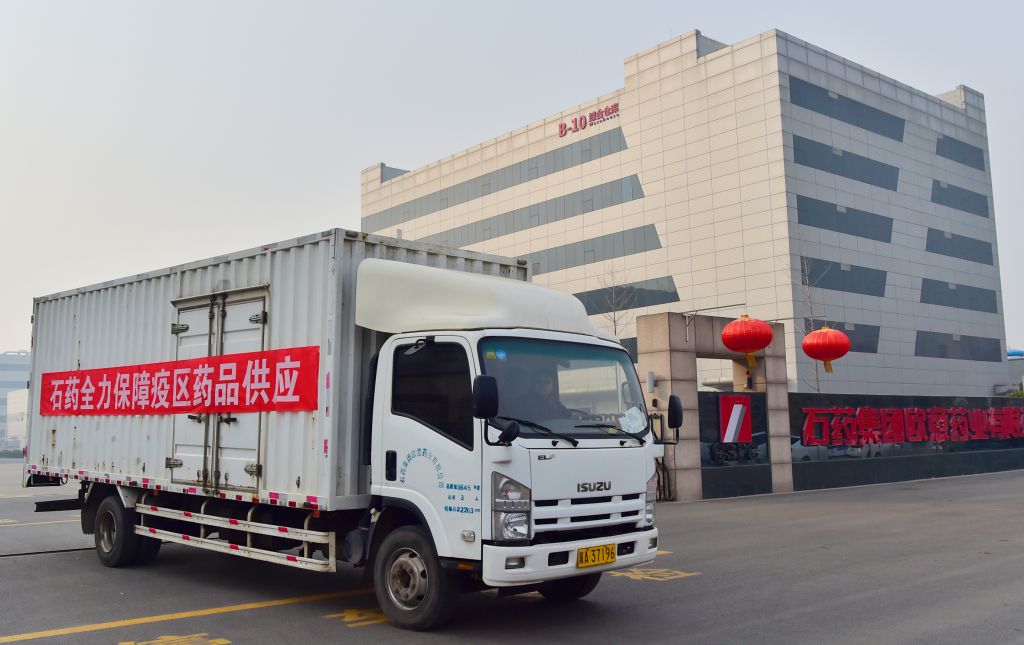 1月27日,装满8万盒琦效(盐酸阿比多尔片)的专线货车,从石药集团第一制造中心出发,将第一时间送达疫情最严重的湖北。