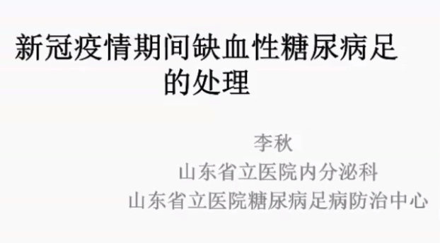 随后一直坚守在抗疫前线、中华医学会糖尿病学分会糖尿病足与周围血管病学组副组长、山东省立医院李秋教授给我们分享了《新冠疫情下缺血性糖尿病足诊治流程》,讲述了糖尿病下肢动脉病变的评估和诊疗,并分享了自己的严重缺血性糖尿病足的病例。
