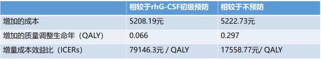 在中国早期乳腺癌患者化疗后,相较于rhG-CSF初级预防或者不预防,尽管使用PEG-rhG-CSF初级预防的成本更高,但考虑到患者的综合效益,给予PEG-rhG-CSF初级预防是更具成本效益的选择。