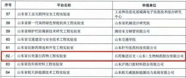 近日,山东省发展和改革委员会公布了2020年山东省工程实验室(工程研究中心)名单,石药集团百克(山东)生物制药股份有限公司的“山东省长效蛋白药物工程实验室”获山东省工程实验室认定。这是百克公司研发实验室首次获得省级研发平台认定。