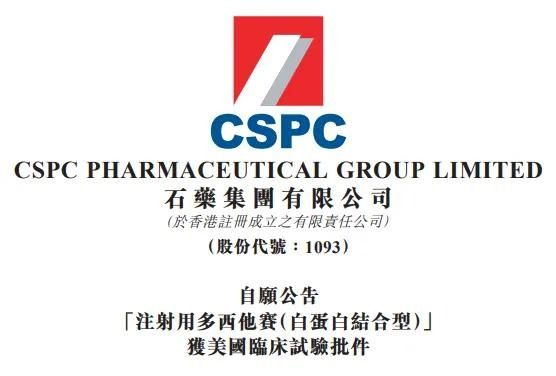 9月17日,我集团发布公告,附属公司石药集团中奇制药技术(石家庄)有限公司开发的新药“注射用多西他赛”(白蛋白结合型)已获美国食品药品监督管理局批准在美国开展临床试验。