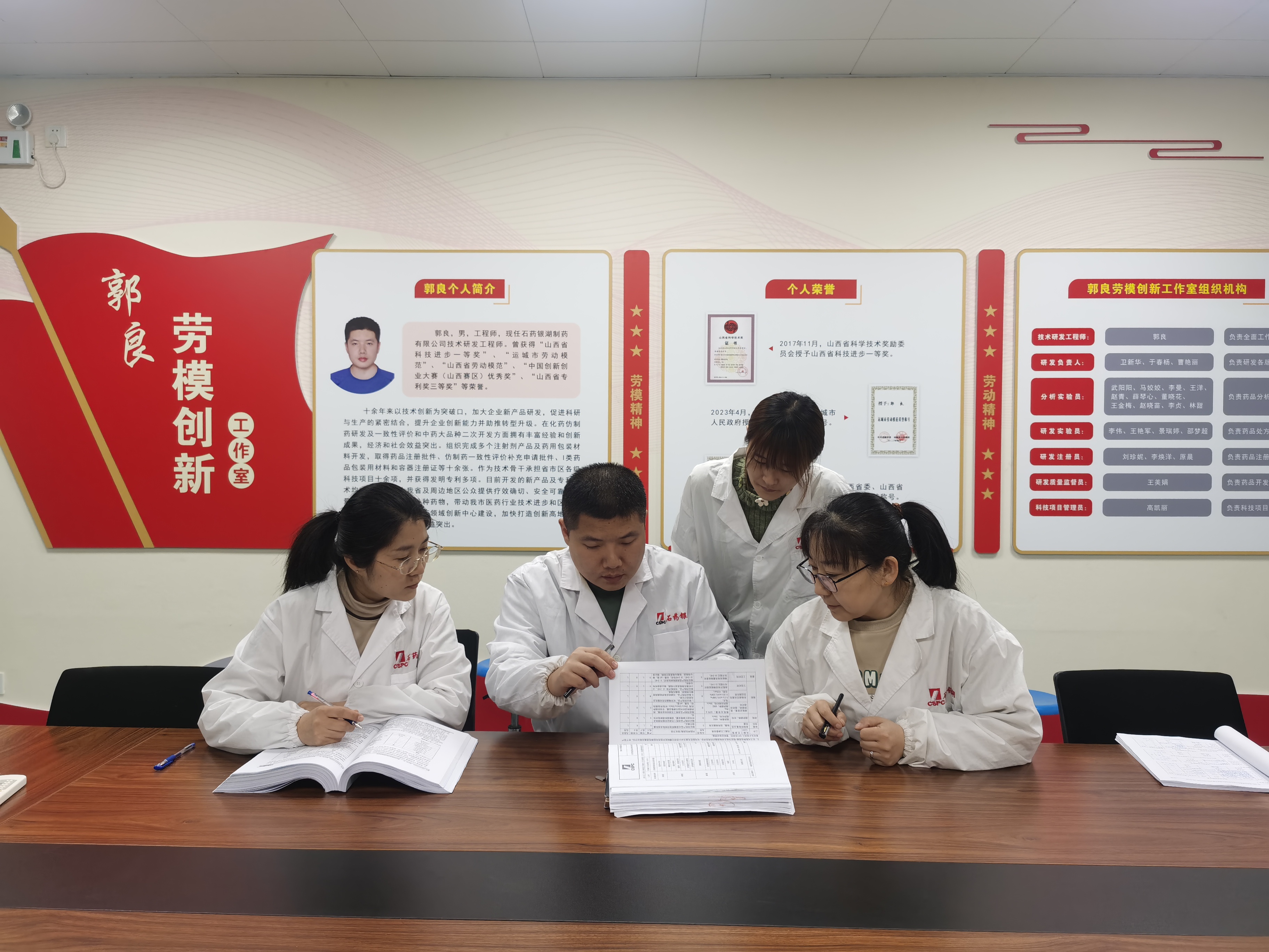 “郭良劳模创新工作室”成立于2024年,创新工作室依托石药银湖研发中心建立,是石药银湖为培养创新型人才、推动科研成果转化而设立的重要平台。该工作室汇聚了一批优秀的骨干人才,致力于在药品开发领域开展前沿性的研究和创新工作。工作室负责人郭良曾获得“山西省科技进步一等奖”、““山西省劳动模范”、运城市劳动模范”、 “中国创新创业大赛(山西赛区)优秀奖”、“山西省专利奖三等奖”等荣誉。