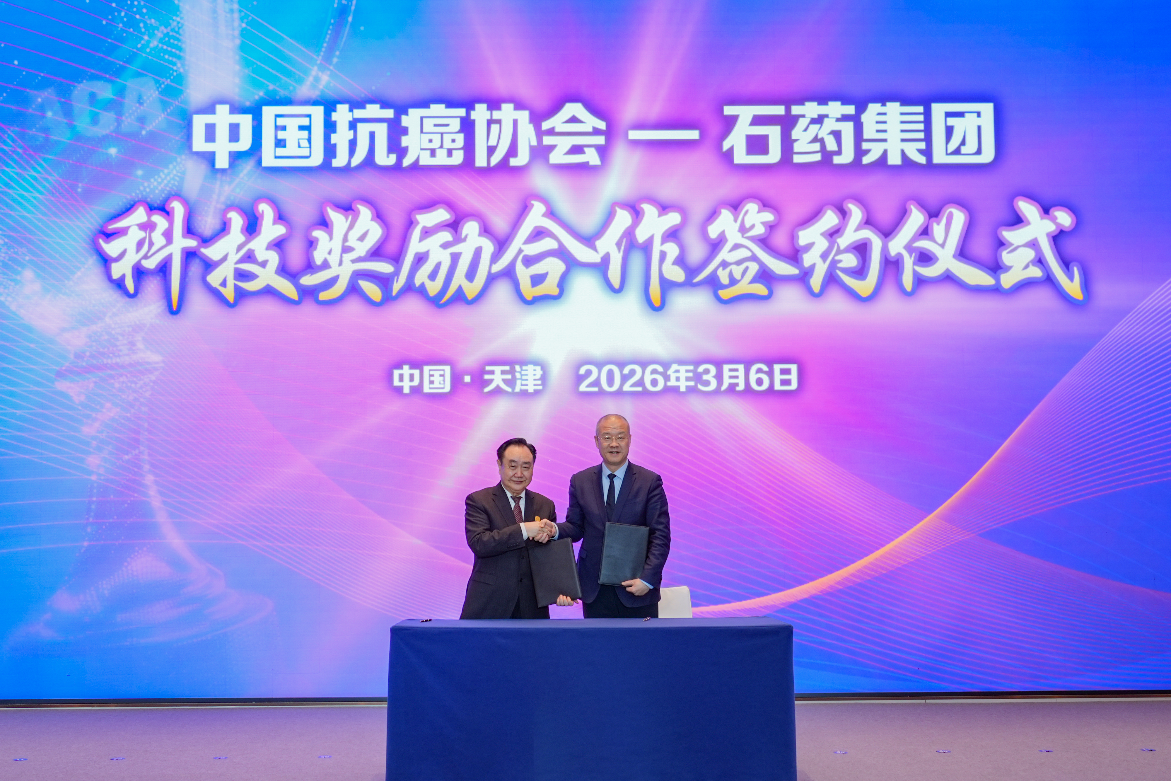 3月6日,中国抗癌协会2025工作总结表彰会在天津隆重召开。来自全国专业委员会、省市抗癌协会的500余位代表齐聚一堂,共同见证石药集团与中国抗癌协会(CACA)签署新一期合作协议(2026年-2028年),石药集团将继续独家支持中国抗癌协会科技奖和青年科学家奖的颁发。