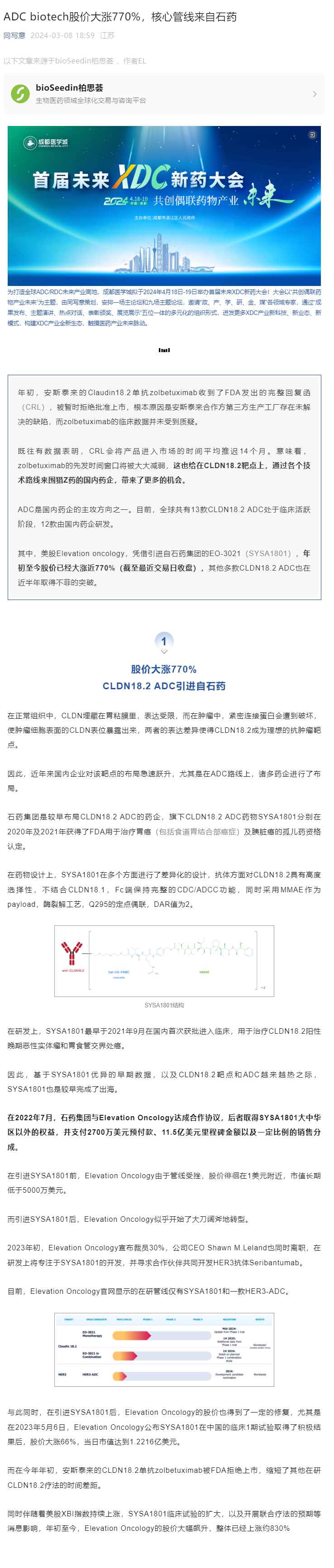 ADC biotech股价大涨770%,核心管线来自石药